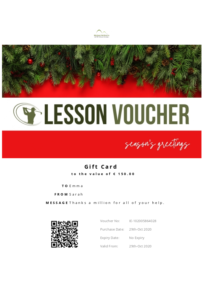 Michael McGivern Golf allows you to purchase instantly printable gift vouchers, special offers and tickets using the Voucher Connect platform.